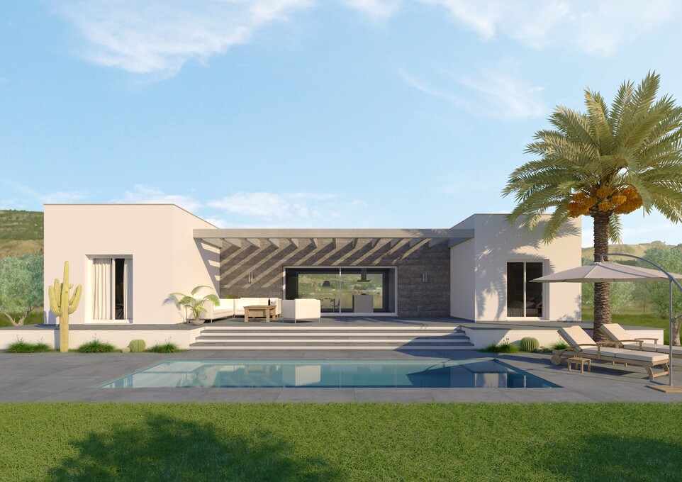 Zeer moderne Villa’s met 3 slaapkamers, patio en zwembad van 12 x 4 meter welke worden gebouwd op een plot van minimaal 10.000 m2, rustig gelegen, omringd door de prachtige natuur van Pinoso. Op vele gebieden zowel qua stijl als qua grootte en indeling zijn aanpassingen geheel naar uw wens mogelijk.